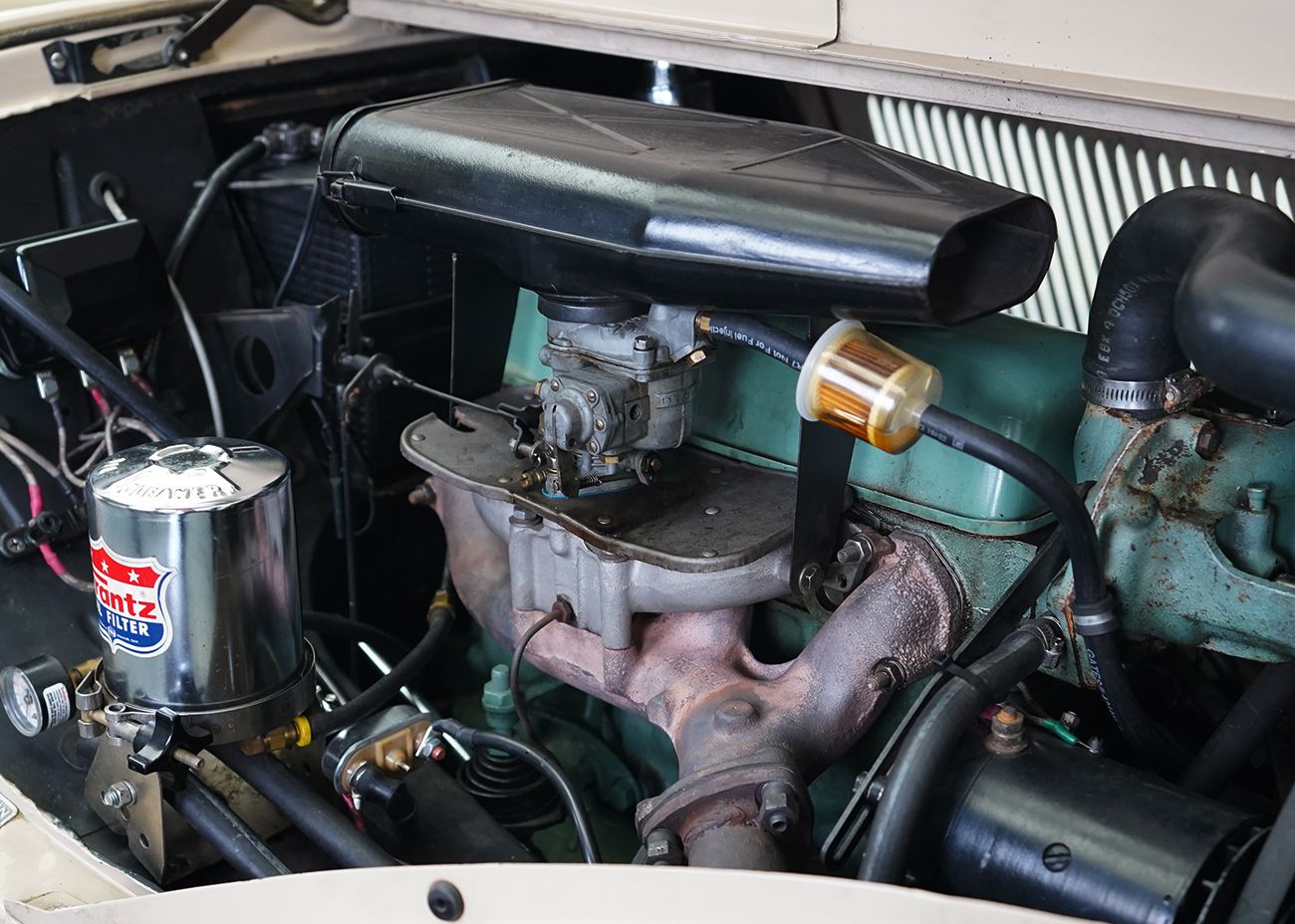 Citroen’s Traction Avant premiered in 1934 and was a pioneering car in many ways, bringing some experiemental technologies intomass production for the first time. It was a front engined, front wheel drive car on a monocoque chassis with fully independent suspension. In the same era, most other manufacturers were still using cart sprung solid front and rear beam axles. The Unibody design also allowed the car to sit much lower and look more sleeker than its body-on-frame contemporaries. Although this wasn’t the first car to use these technologies, it was one of the first to use them on a mass-produced scale and in combination. The Traction Avant was wildly successful, being produced both before and after World War 2, in France and in England, with over three quarters of a million cars being built between 1934 and 1957. My Traction Avant is a French built B11 Legere (lightweight) and was restored in the 1990s by Cliff Bisch, after which he sold it and the new owner essentially never drove it, leaving it parked in a barn most of the time. Cliff retrieved the car, made some initial repairs due to the neglect, and sold it to me, after which I had to rebuild the brakes and starter, as well as sort out some other general issues, largely derived from how long it sat unused. This example does run and drive pretty well, now that the problems have been dealt with. The car is still running on its original 6 volt electrical system. As the first French car to enter my collection, it is one I’ve always admired the design of and felt was the most approachable Citroen to start with
