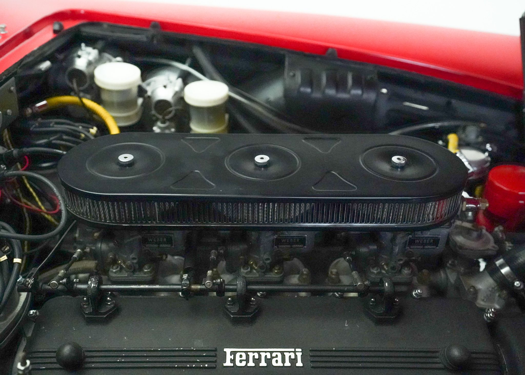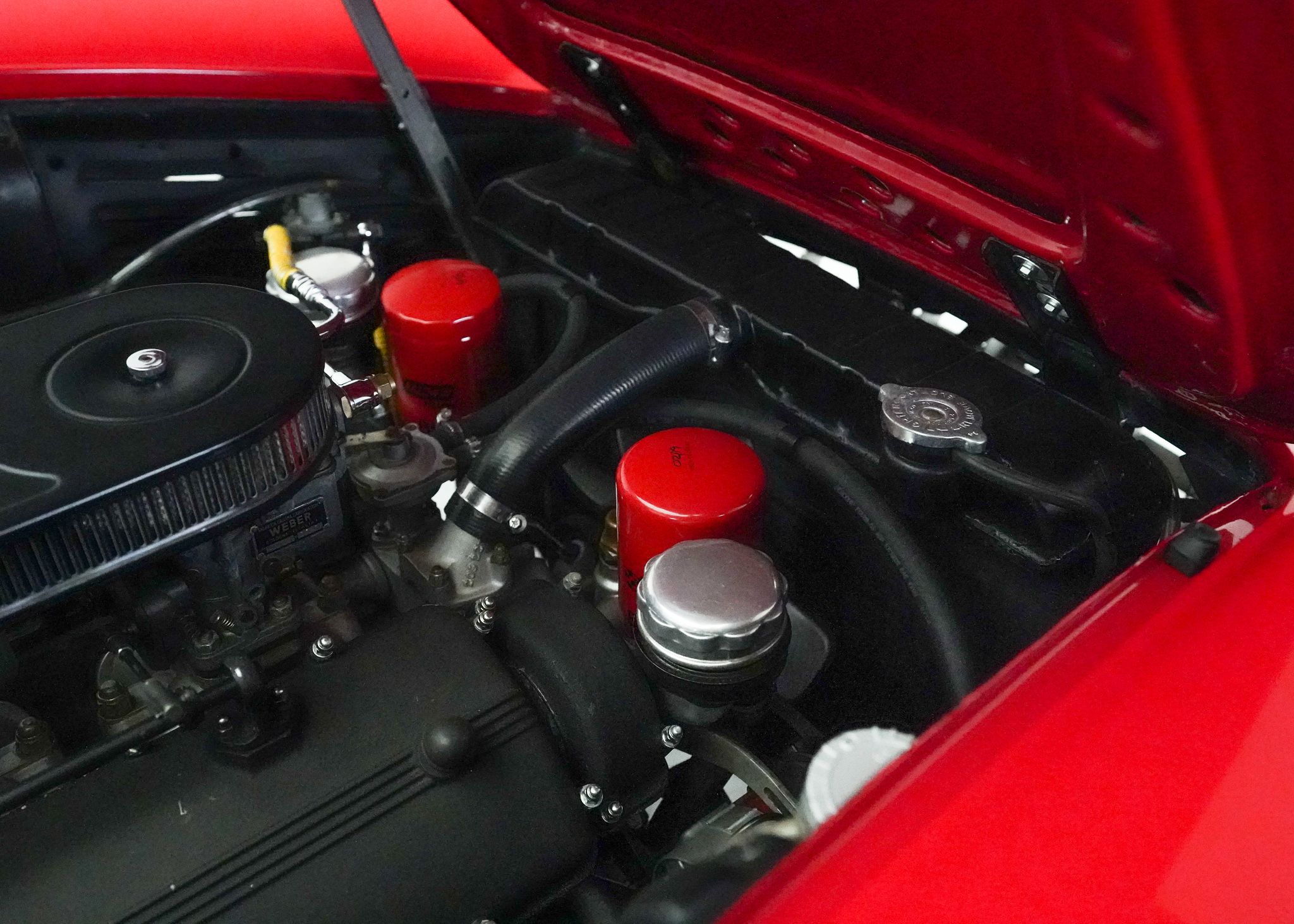 Replacing the 250 GT/E in Ferrari’s lineup of models, the 330 continued to fill the same place of Ferrari’s best selling 250 variant, providing a very comfortable 2+2 layout in a long wheelbase GT car, intended for practical everyday use. The most significant upgrade in the drivetrain between the 250 and 330 was an increase in displacement from 3 to 4 liters in the Colombo V12, still utilizing three downdraft two barrel Weber carburetors mounted in the vee of the engine to provide fuel. This drivetrain was fitted to an updated chassis design, with a little longer wheelbase and slightly wider than that of the 250 allowing for more interior space. Still fitted with a live axle in the back, it had 4 wheel disc brakes, and Koni telescopic suspension from new, along with a half inch wider Borrani wire wheel than that fitted to the 250 GT/E. Built in two series, the first series cars all had 4 headlights, at Enzo Ferrari’s insistance, but the second series reverted to a more traditional two headlight arrangement. Over the course of production the 4 speed gearbox with electric overdrive was eventually replaced by a true 5 speed model and all second series cars received this updated transmission along with some changes to the brake booster setup, the adoption of a hydraulic clutch, and changes to the pedal mountings. I purchased this Ferrari, originally thinking it would serve as a stop-gap in my collection until the Ferrari 250 GTE that I bought after it came on to the market, though when the 250 became available much sooner than I expected, I decided to keep both cars as they fill somewhat different roles in the collection. This car is a driver-level example, with some light wear from use and a few incorrect but not obvious details changed on it, mostly to improve the car’s driveability. When I purchased it, it was a running car, wearing an older restoration, but had not been driven extensively in the recent past and wasn’t necessarily fully sorted out, needing the distributors serviced as well as ignition timing and carburettor adjustments made to get it to run as it should. Once that was done, however, it proved to be a very nice car to drive, with the wonderful power and sound of the Colombo V12 coupled with a very comfortable interior. Steering is unassisted and somewhat heavy but otherwise the car is very capable and easy to drive. In contrast to my Ferrari 250, the driver level condition and lower value of this car makes it an ideal candidate for long distance or multi-day tours, as well as driving in less than perfect conditions. Though not really a show car, this car is an ideal example of a Ferrari that is still very practical and could be easily be used on a regular basis, with plenty of space inside, a large trunk, and excellent power and handling.