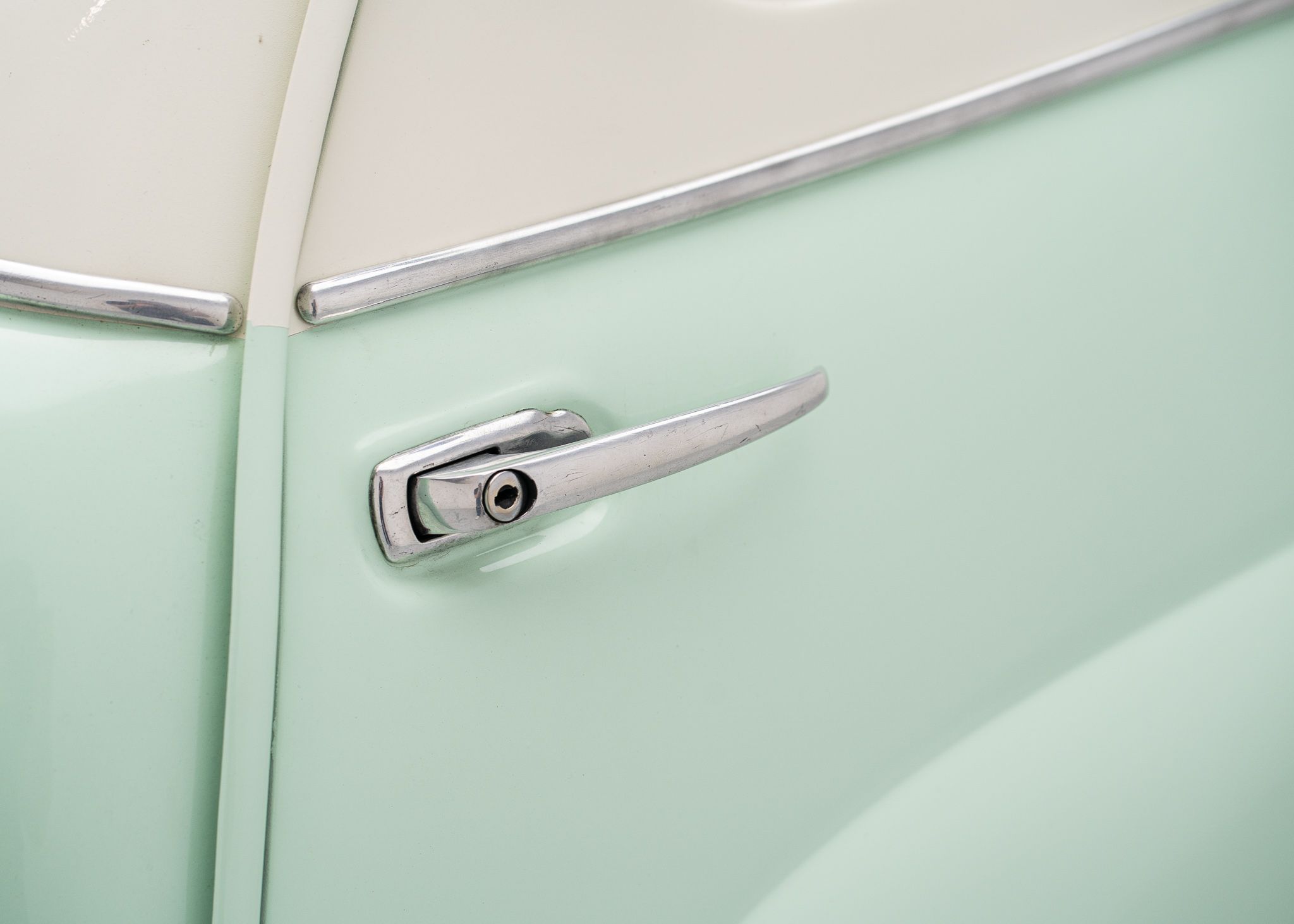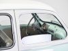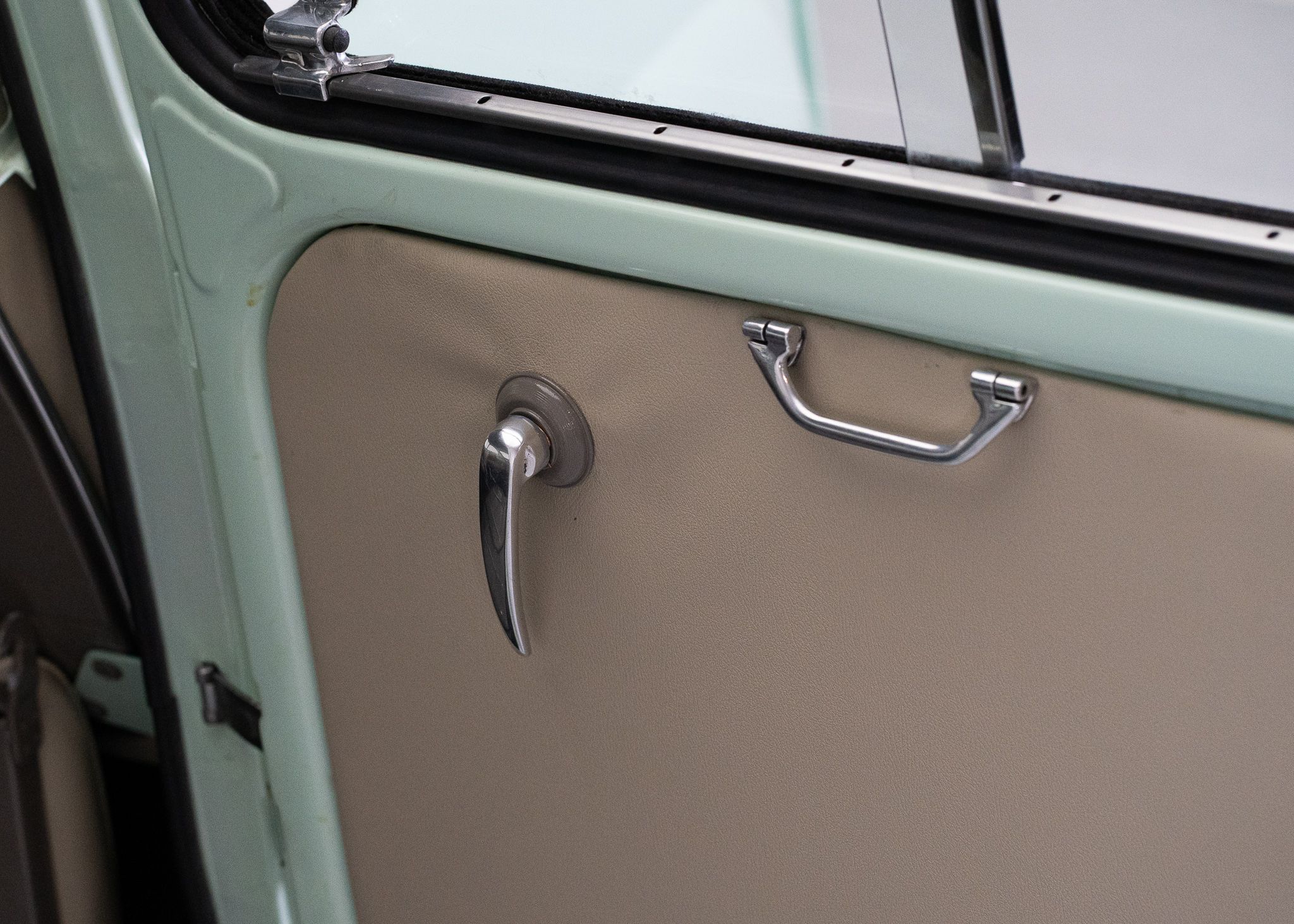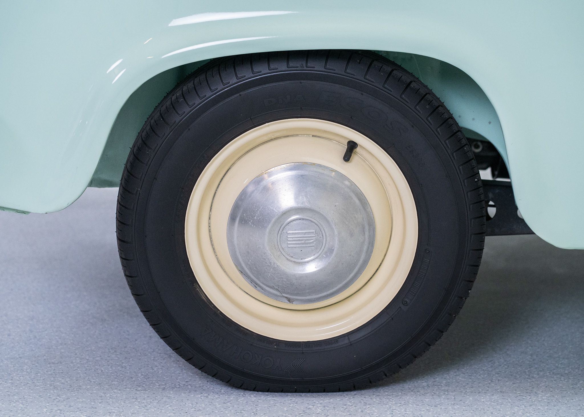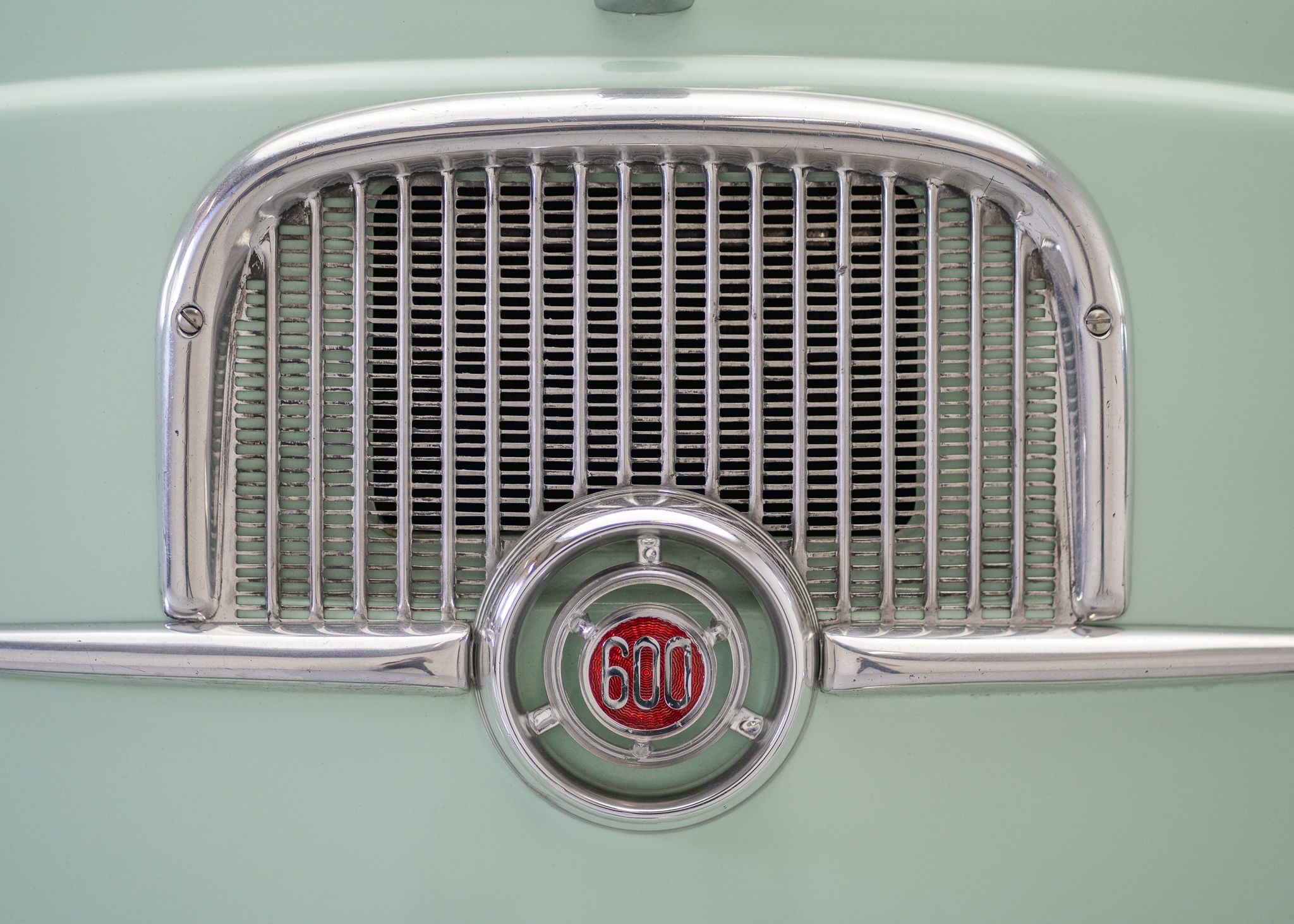 The Fiat 600 Multipla is a lightweight unibody people carrier, built on the same wheelbase and drivetrain as the far more common coupe, making for a remarkably compact, but very versatile vehicle. The front suspension is more closely related to the Fiat 1100, with the driver placed at the very front of the vehicle. The Multipla came in a three variations, with the major difference being the design of the seats, with one having bench seats in the back that, along with the front seat, can fold down into a bed, while the other, like this one, has rear seats that can be folded into the floor to form a flat loading area. The third configuration was specifically designed to serve as a taxi, and these were commonly used as taxis in Italy in the 1960s. The original engine fitted to the 600 Multipla was a 633cc 4 cylinder, producing only 21 bhp, so in order to allow the small engine to push the heavily loaded vehicle, a very tall final drive was fitted, yielding a top speed of 57 miles per hour, unladen. This example was an original North American market example, which can be identified by the 7 inch diameter headlights that replaced the much smaller European lamps. It was completely disassembled and restored by the previous owner in Vancouver BC, and fitted with a new old stock 903cc engine from a later Fiat that was mounted to the original gearbox, giving a significant upgrade to power. Driving the Multipla is a lot of fun as you spend most of your time pressing the gas pedal all the way to the floor to accelerate. It is certainly capable of keeping up in modern traffic in town, but without regearing, it would be dangerous to take it on a highway. It also takes a bit of getting used to the driving position, which has the driver sitting upright over the front axle, with the steering column disappearing into the floor between the driver’s feet, much like a VW bus, though in a significantly smaller vehicle.