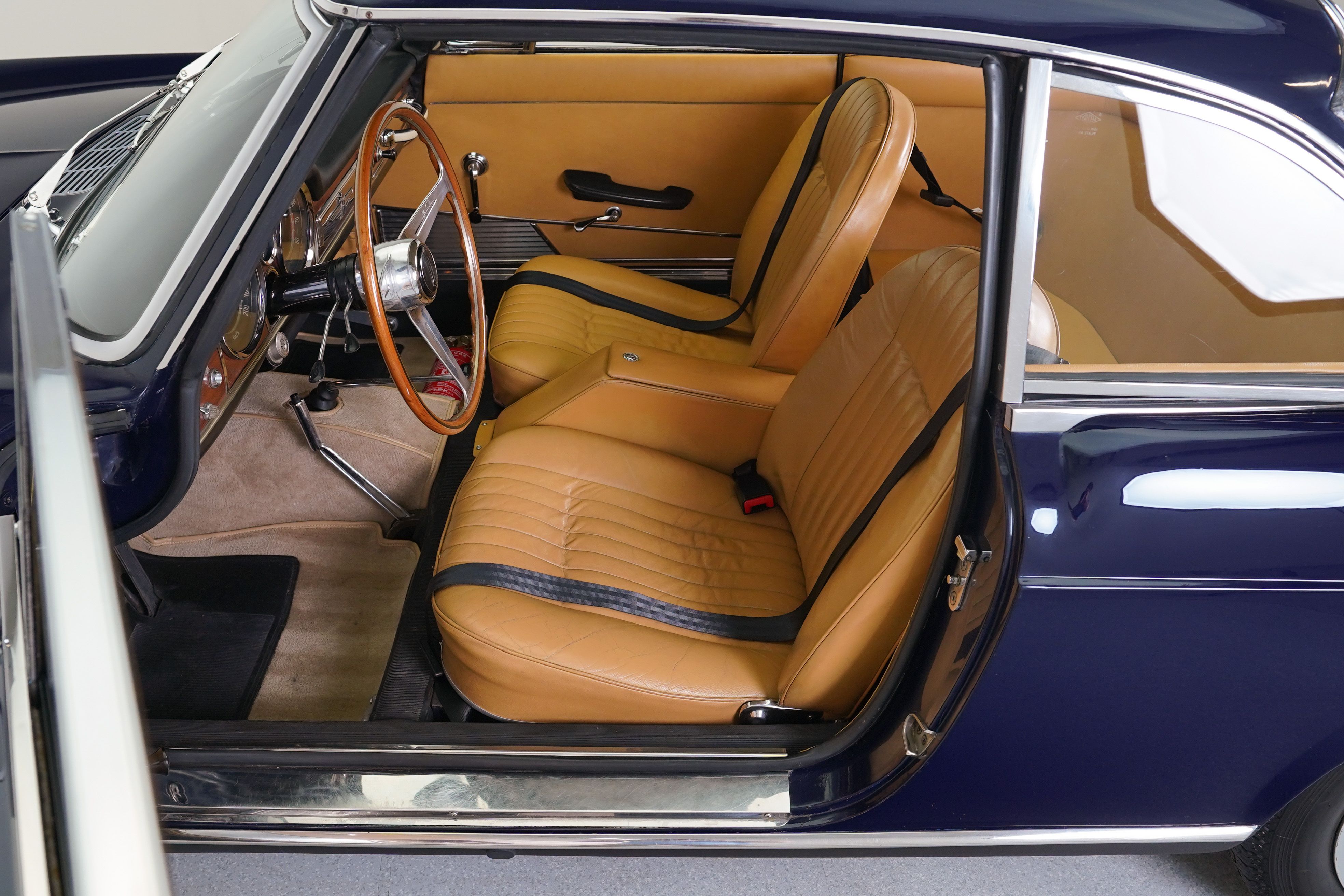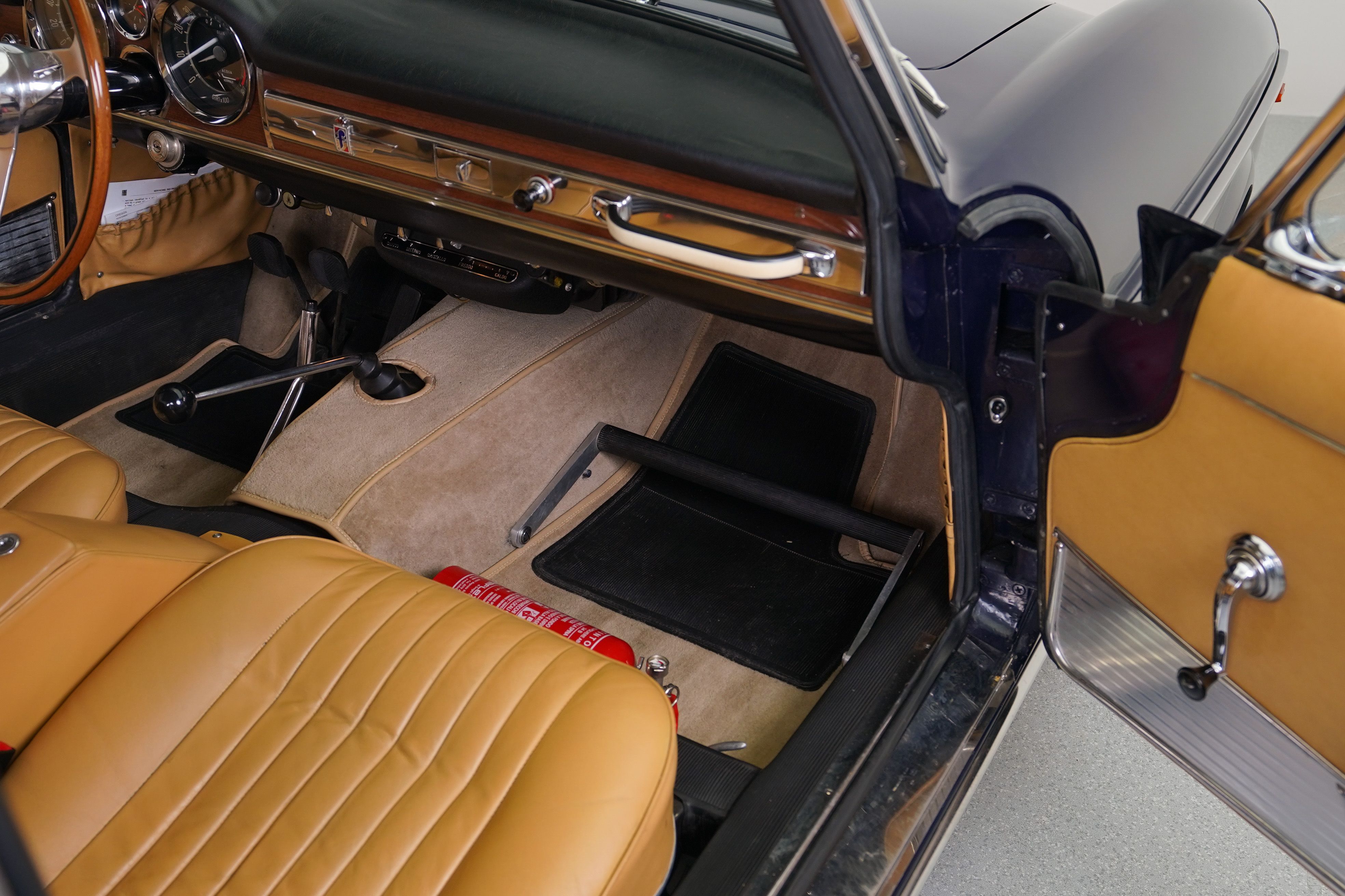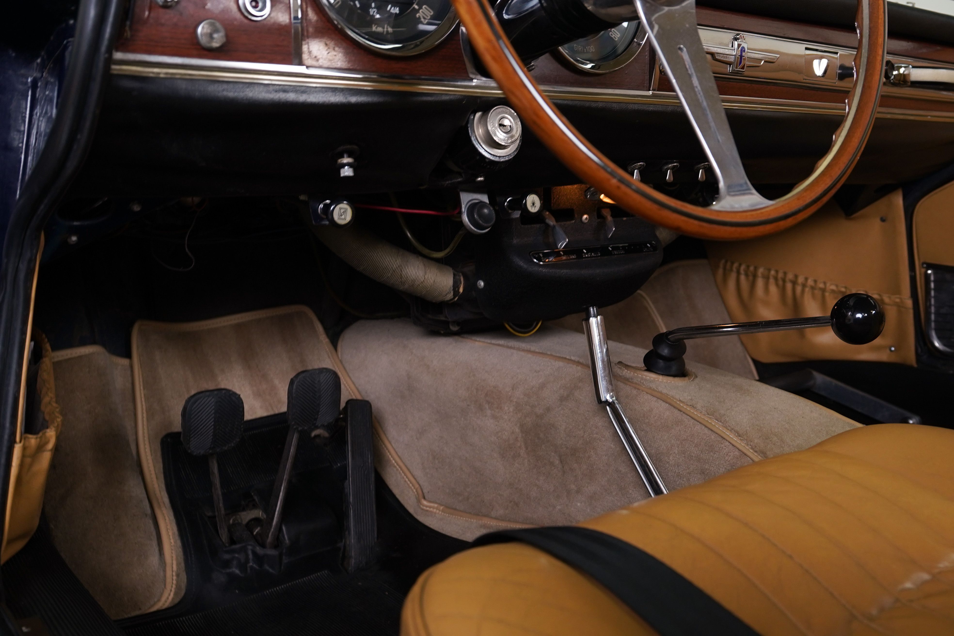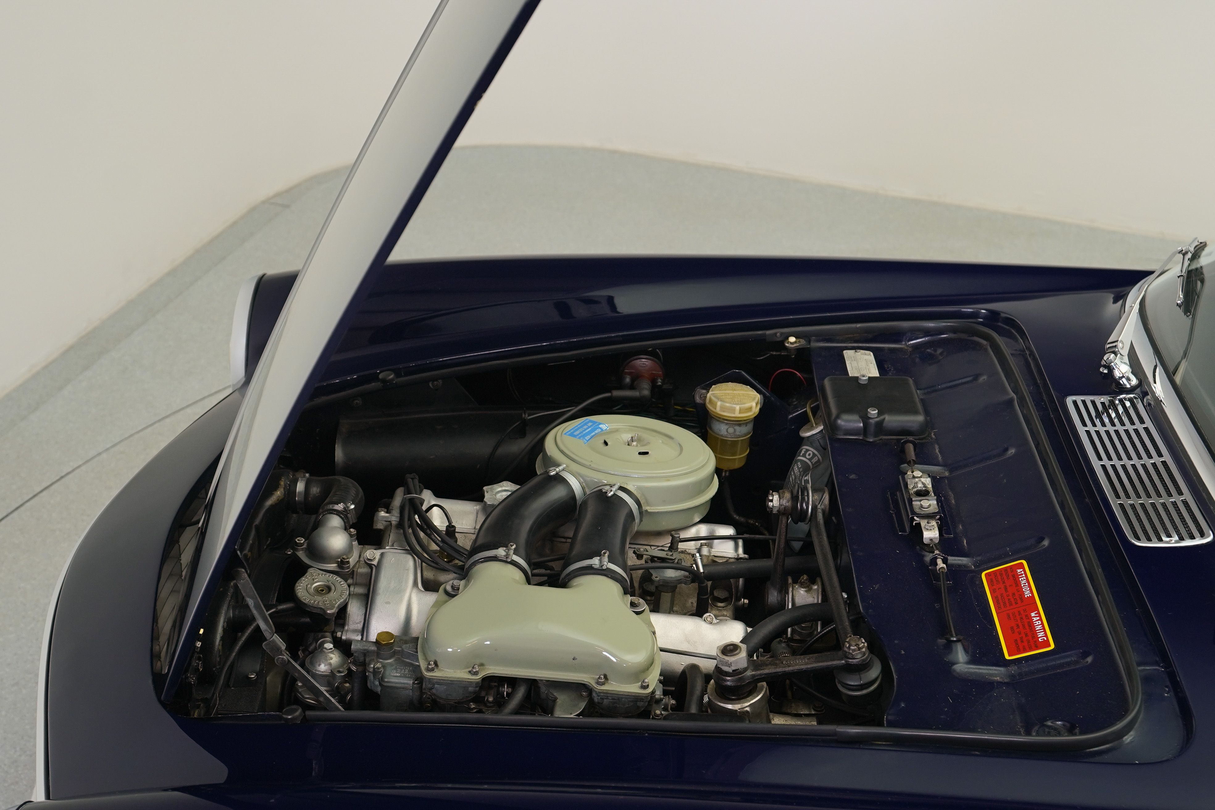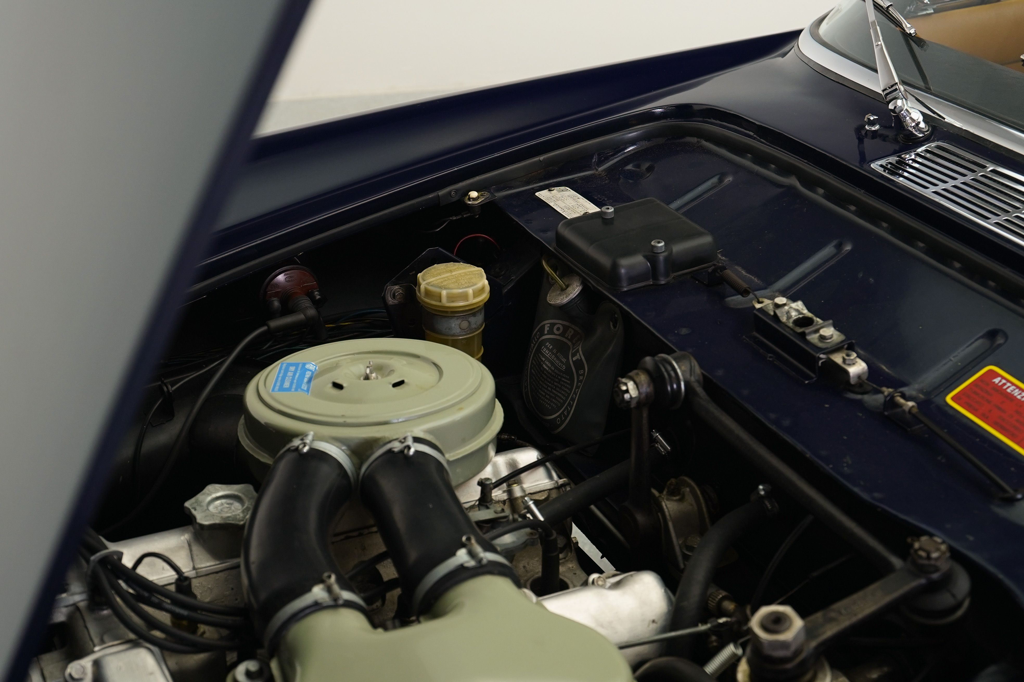 The Fiat 1600S was a high performance variant of Fiat’s midsize car lineup. Based on the line of cars which began with the 1100 Sedan in 1953, which had a more traditional pushrod engine as did most of the cars in the lineup. In 1959, an agreement was entered between Fiat and OSCA, founded by the Maserati brothers after having sold their interest in Maserati to the Orsi family, for Fiat to tool up and build the 1500cc OSCA designed engine which was then used for both Fiat models and OSCA sports and race cars making it easier to meet the 500 required for racing homologation requirements. The engine was a not related to the earlier pushrod engine and featured twin overhead cams and hemispherical combustion chambers. Fiat put these engines in similar Pininfarina-designed bodywork to their 1200 Spiders and Coupes, producing higher performance, elagant cars which fit neatly between their rear engined small displacement cars and their larger cars aimed at the executive market. In 1962, the engine was enlarged and the 1600S replaced the 1500S. In 1966, the Fiat 124 was introduced with its own Lampredi-designed twin cam engine and production of the OSCA engined cars ceased. Due to the difficulty of building the engines and thus the added cost, production numbers remained low, with quoted numbers suggesting it is somewhere between 500 and 3100 cars built, of which the majority were spiders. This car was purchased by the previous owner from Europe, having been restored there to a very nice standard, and upon its arrival in the US was given to a shop local to me to ensure that it was made completely reliable and ready to take on long distance tours. I purchased this car from that previous owner along with two other cars when he decided to downsize his collection. On seeing this car for the first time, I was struck by how much it resembled my 1962 Ferrari 250 GTE, which was also a contemporary Pininfarina design and one of my favourite GT cars in the collection. As is typical of Pininfarina cars of this era, its very elegant with good, solid build quality and excellent finish. The car drives very well and the engine is particularly happy at higher revs, with a very pleasing exhaust note and decent performance. The seating position is quite comfortable and this car could easily be driven daily if one wished. The suspension and steering is essentially still that of the 1953 1100, which Fiat continued to use for the entire range of cars, but still responds reasonably well for a touring car and the gearbox shifts fairly easily, though by this point Alfa Romeo and others were already employing 5 speed gearboxes which this car would benefit from. In all it is still a pleasant car to drive and certainly a beautiful little coupe.