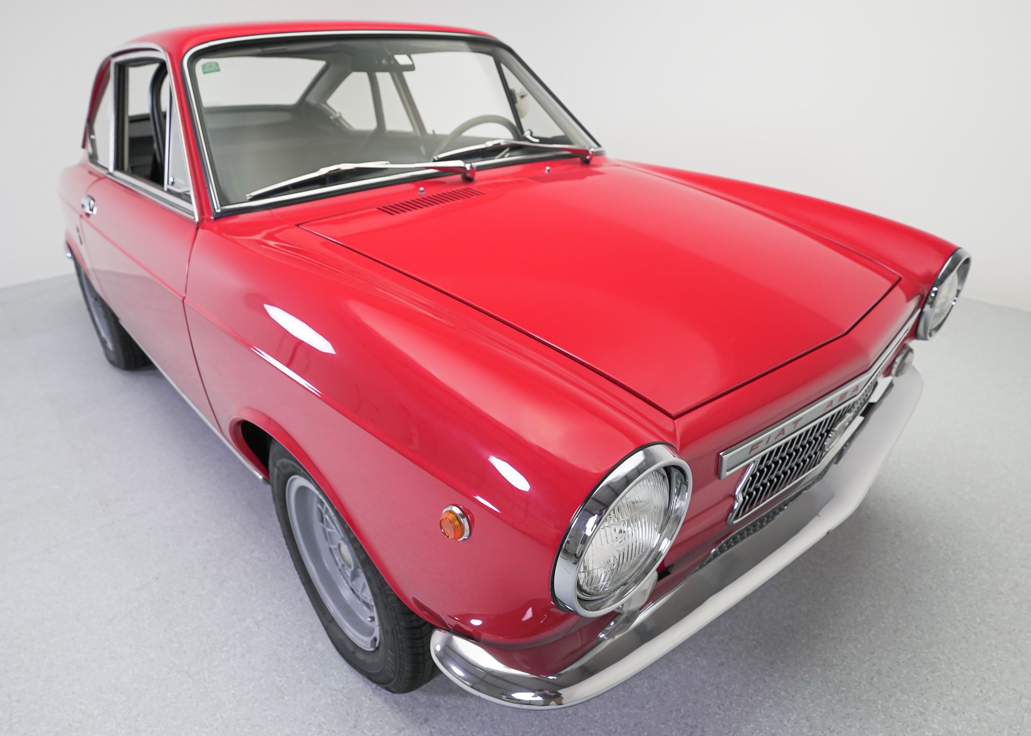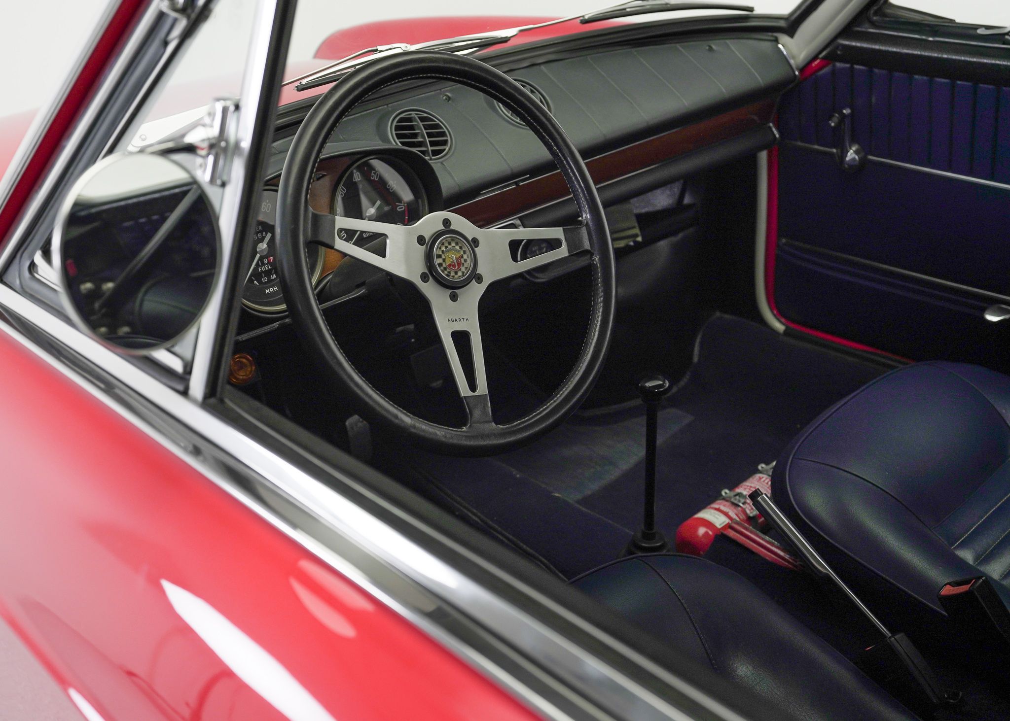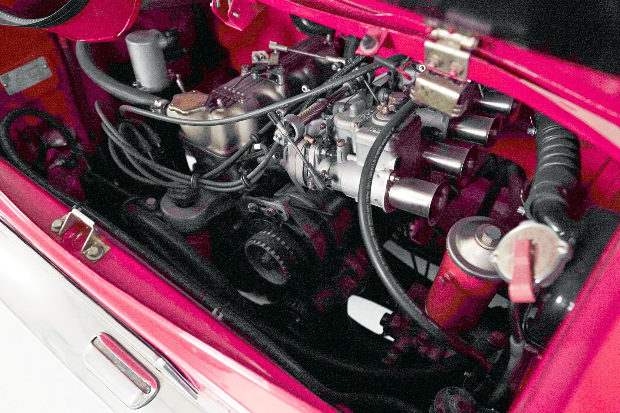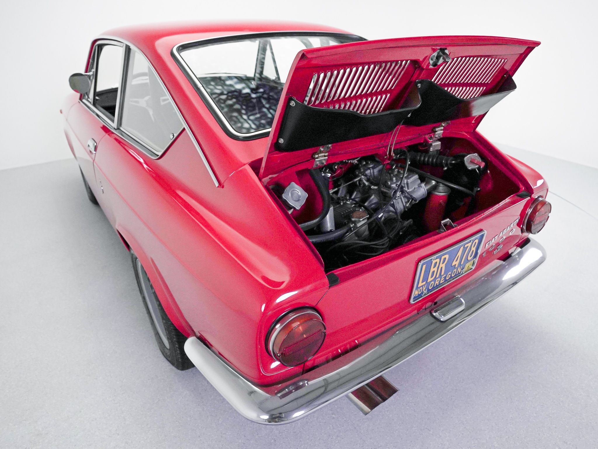 The Fiat Abarth 1000 OTR is based on the Fiat 850 Sport Coupe chassis, but with a heavily modified Fiat 600 engine redesigned by Abarth, as well as a front mounted radiator and other changes to turn the more pedestrian 850 into a very competitive track car in the sub-one liter class, designed to not only take on the Mini Cooper but also to compete with Porsche 911s in the Turismo classes. At over 100 horsepower, the engine had over twice the output of the engine the 850 came with as standard. This was accomplished though a significant redesign of the engine, utilizing a unique “Radiale” head which featured hemispherical combustion chambers and crossflow design, with four separate exhaust ports rather than the twinned ports on the stock Fiat head. The engine still operates off a single cam and pushrod arrangement but with a dual rocker shaft system to allow for proper operation of the valves within the new combustion chamber geometry. A further increase in power came from the significant increase in compression as well, all coming together to make the radiale engine represent the peak of Abarth’s development of the Fiat 600 block. Despite the car’s incredibly competitive performance, in the United States, it was banned from racing in the Sports Car Club of America (SCCA) sanctioned events, mostly because the homologation requirements for the SCCA were that 500 units needed to be produced rather than the FIA’s 50 to meet the European racing standards. This example is one of the few to have been shipped to the United States and was sold new in Pennsylvania and used to race in hillclimb events. After an accident it went into storage, changed hands a few times, generally remaining in Pennsylvania until 1992, when it went to a new owner in Australia. It changed hands in Australia once again in 2005 and finally that new owner completed a restoration on the car to a very high level, repairing the accident damage and refinishing the car, bringing it to the condition it is in today. That owner sold the car to a collector in the United States, returning the car to this country and I purchased the car from that collector at auction. Driving this car is a lot of fun as it does have amazingly good acceleration, though it is fairly evident that it was intended to be a track car from the beginning. There is a front mounted radiator to meet the higher cooling requirements of the much more powerful engine, with piping running from the rear to the front, though there isn’t a thermostat in stock form. As a result, the car runs cool if driven at a cruising speed without traffic, but comes up to operating temperature if you drive it more like a race car, keeping the revs up and pushing the engine. Arguably, it is just a good excuse to push it harder and enjoy what the car is capable of!