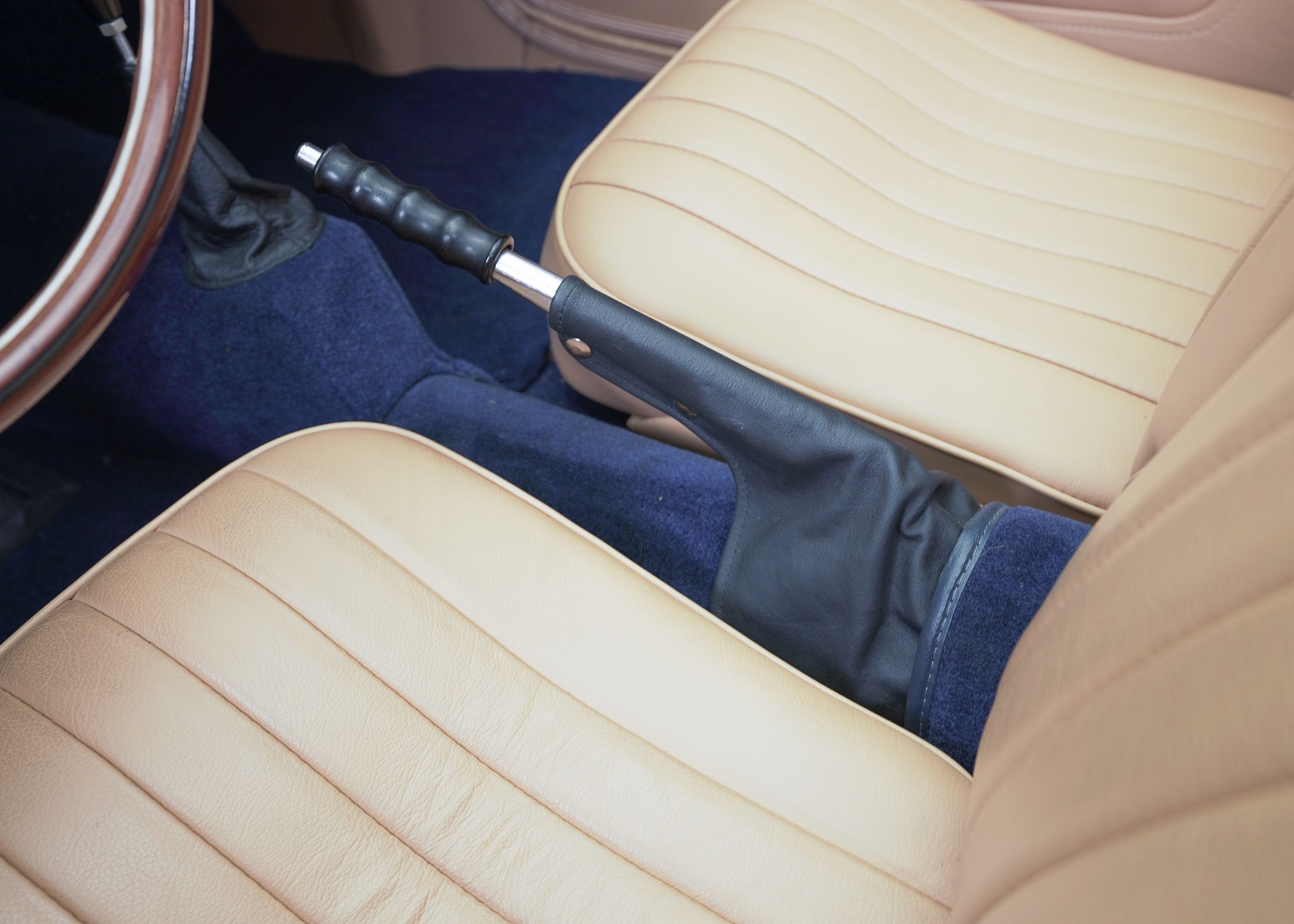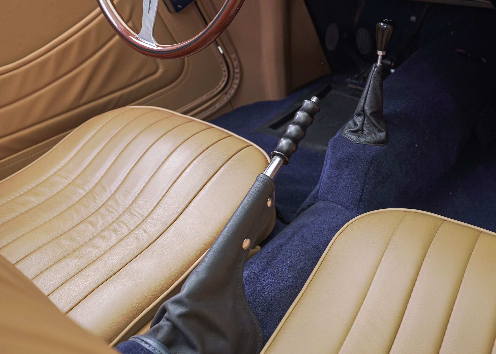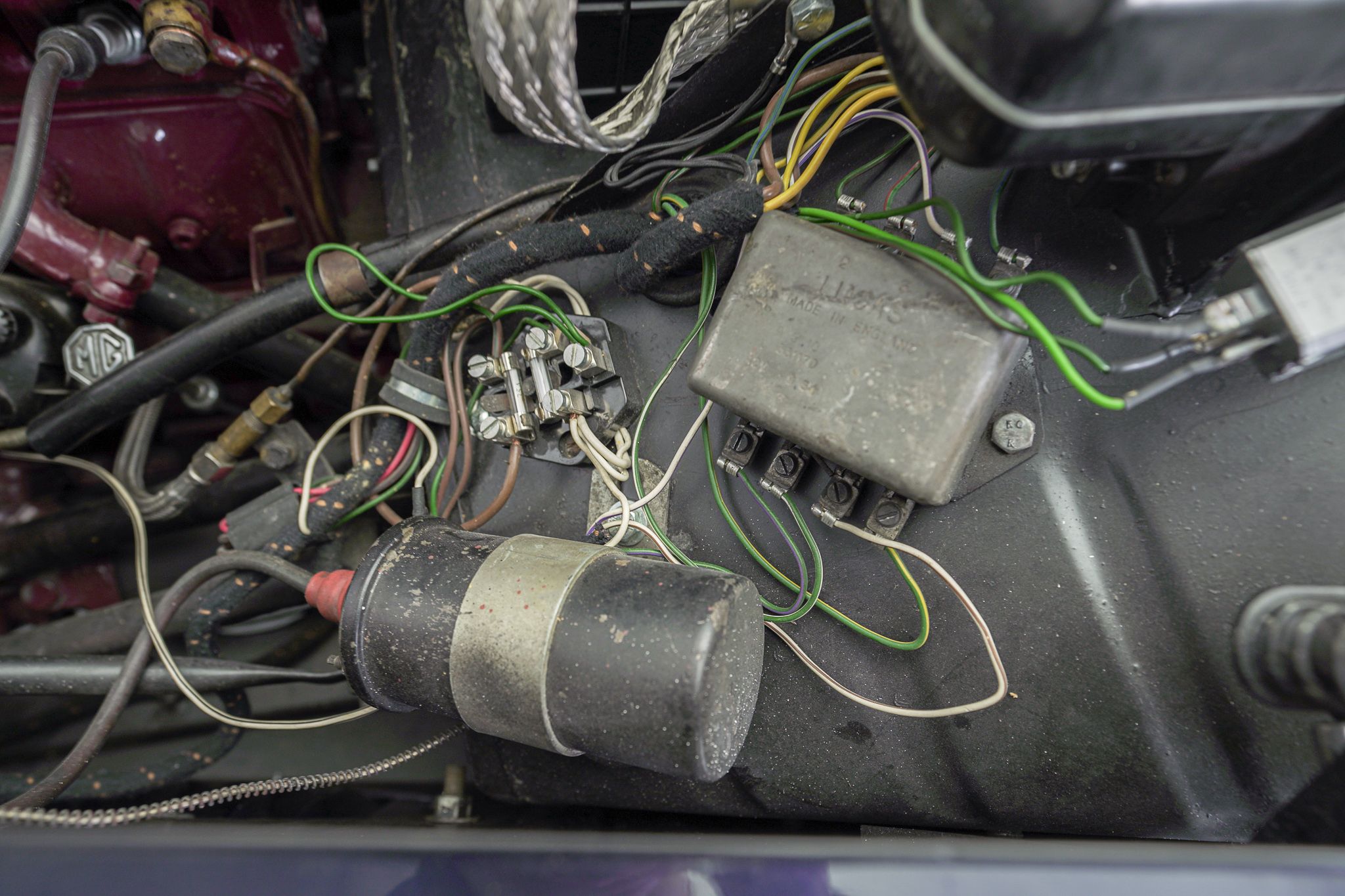 Although the MG TC is often considered to be the car that introduced Americans to European sports cars, by the time the MG TF came out in 1953, it was the second facelift of the MG TC’s prewar design and was looking very dated. The TF did make some cosmetic changes, introducing a more slanted radiator grille, integrating the headlamps into the wings, and reshaping the back end to make it a bit sleeker looking. Although the TD, which preceded the TF introduced front independent suspension to the design and various other upgrades over the TC, it left the drivetrain more or less the same, aside from changes to the rear axle design. It wasn’t until 1955 at the end of the TF production that the pre-war XPAG 1250cc engine used from the TA of 1937 into the MG TF, was upgraded to the new XPEG 1466 engine which slightly raised horsepower, but more significantly, a 17 percent increase in torque. This example was restored locally to a high standard with just about everything rebuilt and we saw it for the first time when the shop that rebuilt the drivetrain was doing the final tuning on the freshly completed car. The owner at the time was a woman who had owned the car for years and had commissioned the restoration. Unfortunately, shortly after, she fell ill and several years later she had passed away and the car came up for sale, having hardly been driven since we had seen it last. Both of us had fallen in love with the beautiful colour combination and execution of the restoration on this car, so we opted to buy it to replace a driver level MG TF 1500 we already had in the collection. With its light weight and the extra power of the later engine, this MG TF 1500 is a surprisingly sprightly vehicle to drive. After buying it we opted to retrofit a 5 speed gearbox to the car, which allows the car to make the most use of its extra torque and makes it very comfortable to drive over longer distances at higher speeds.