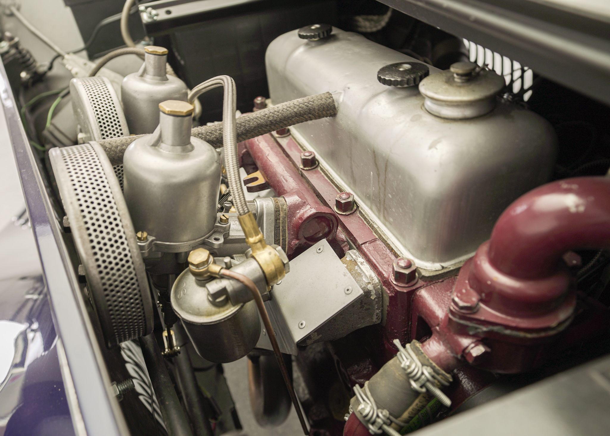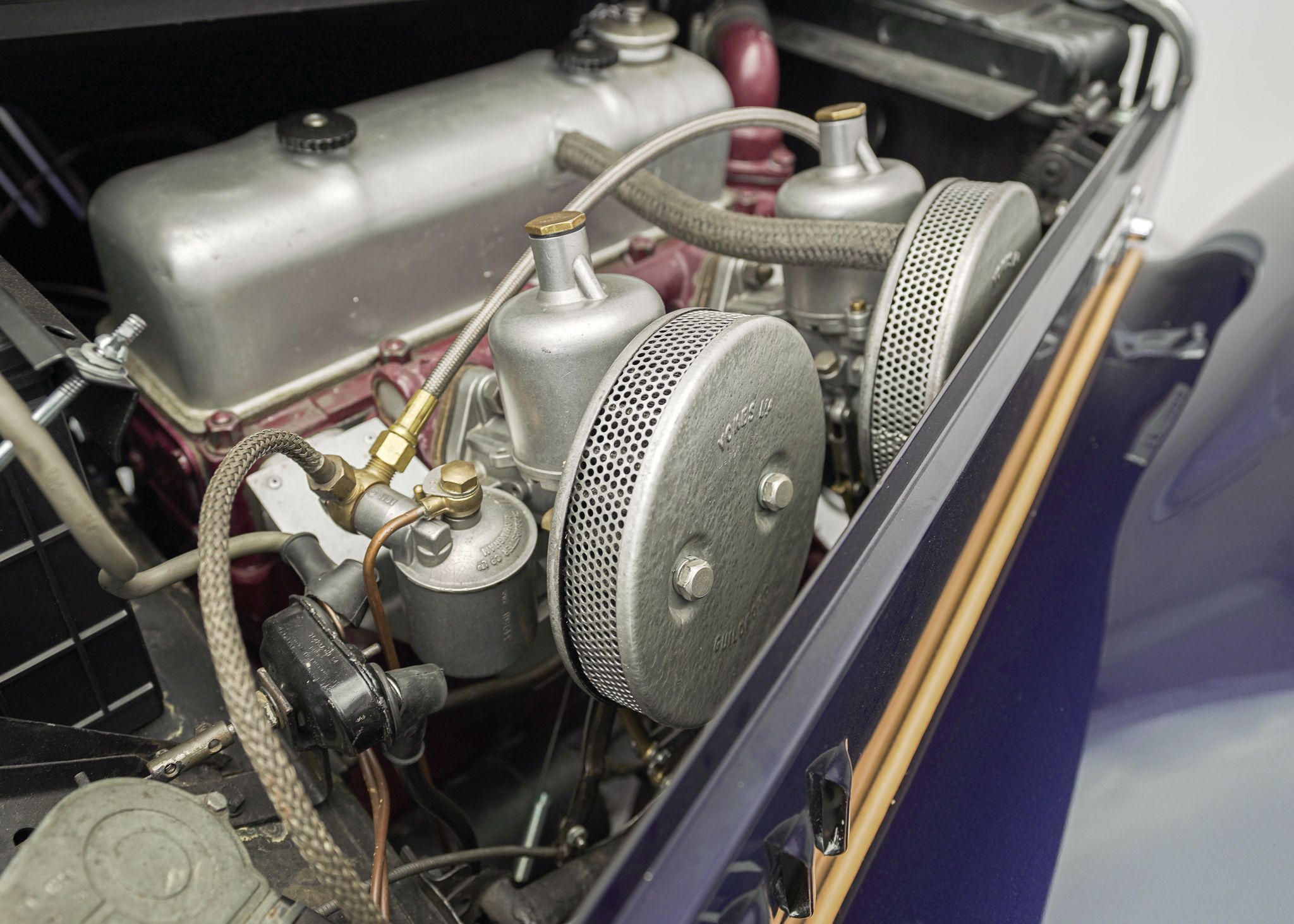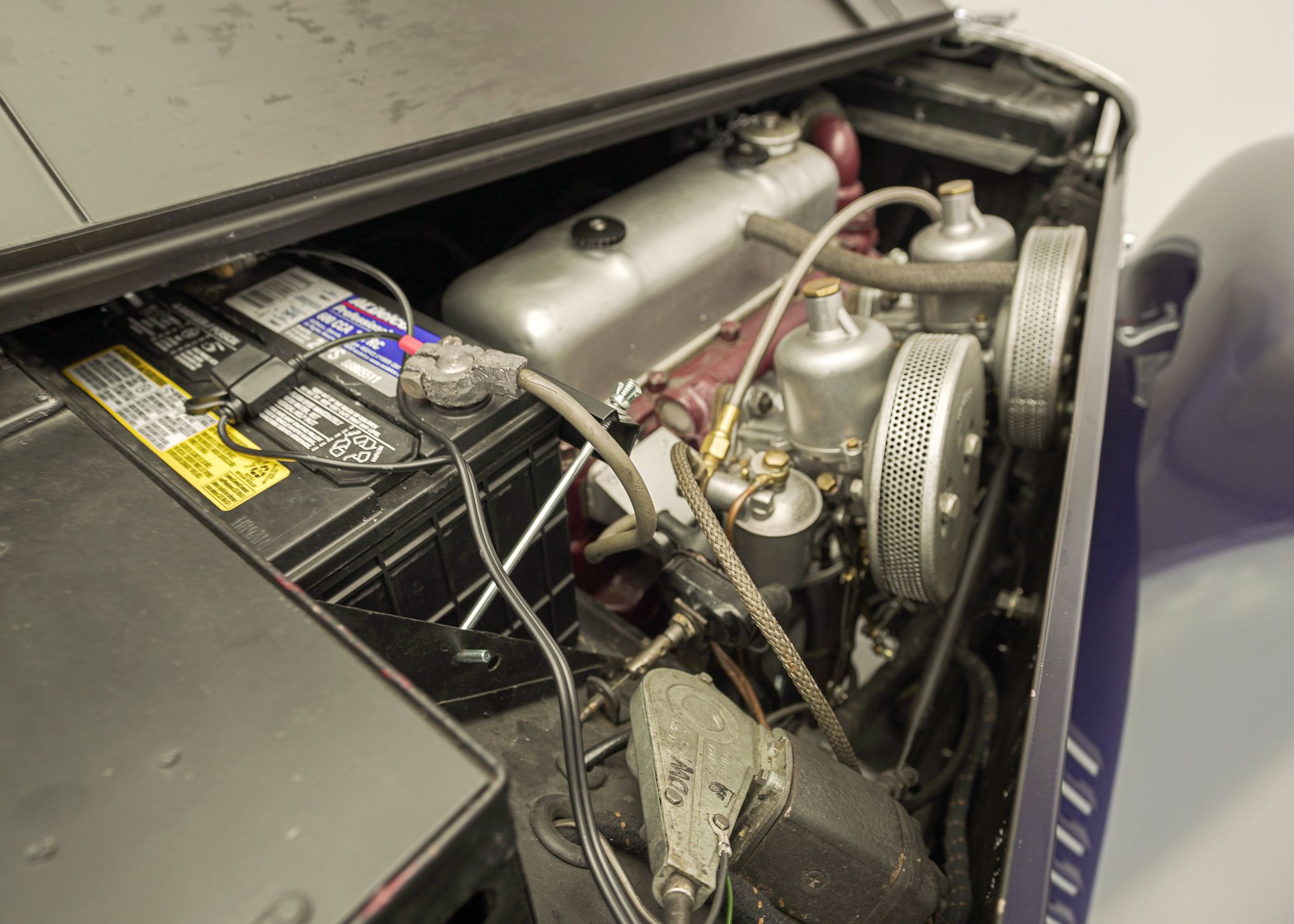 Although the MG TC is often considered to be the car that introduced Americans to European sports cars, by the time the MG TF came out in 1953, it was the second facelift of the MG TC’s prewar design and was looking very dated. The TF did make some cosmetic changes, introducing a more slanted radiator grille, integrating the headlamps into the wings, and reshaping the back end to make it a bit sleeker looking. Although the TD, which preceded the TF introduced front independent suspension to the design and various other upgrades over the TC, it left the drivetrain more or less the same, aside from changes to the rear axle design. It wasn’t until 1955 at the end of the TF production that the pre-war XPAG 1250cc engine used from the TA of 1937 into the MG TF, was upgraded to the new XPEG 1466 engine which slightly raised horsepower, but more significantly, a 17 percent increase in torque. This example was restored locally to a high standard with just about everything rebuilt and we saw it for the first time when the shop that rebuilt the drivetrain was doing the final tuning on the freshly completed car. The owner at the time was a woman who had owned the car for years and had commissioned the restoration. Unfortunately, shortly after, she fell ill and several years later she had passed away and the car came up for sale, having hardly been driven since we had seen it last. Both of us had fallen in love with the beautiful colour combination and execution of the restoration on this car, so we opted to buy it to replace a driver level MG TF 1500 we already had in the collection. With its light weight and the extra power of the later engine, this MG TF 1500 is a surprisingly sprightly vehicle to drive. After buying it we opted to retrofit a 5 speed gearbox to the car, which allows the car to make the most use of its extra torque and makes it very comfortable to drive over longer distances at higher speeds.