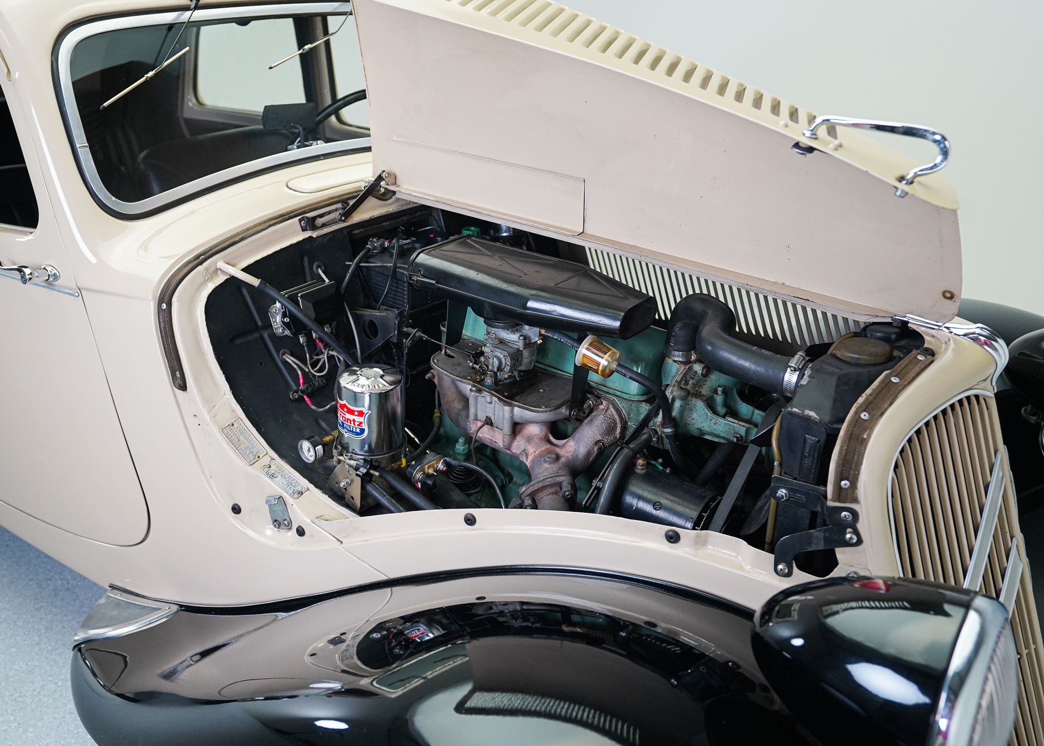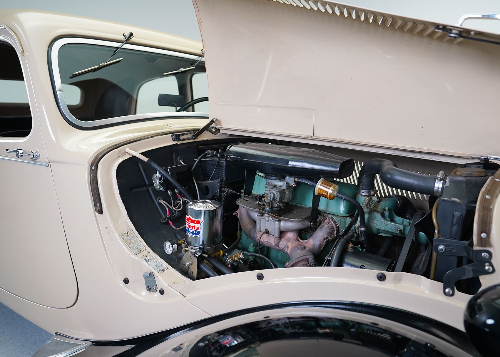 Citroen’s Traction Avant premiered in 1934 and was a pioneering car in many ways, bringing some experiemental technologies intomass production for the first time. It was a front engined, front wheel drive car on a monocoque chassis with fully independent suspension. In the same era, most other manufacturers were still using cart sprung solid front and rear beam axles. The Unibody design also allowed the car to sit much lower and look more sleeker than its body-on-frame contemporaries. Although this wasn’t the first car to use these technologies, it was one of the first to use them on a mass-produced scale and in combination. The Traction Avant was wildly successful, being produced both before and after World War 2, in France and in England, with over three quarters of a million cars being built between 1934 and 1957. My Traction Avant is a French built B11 Legere (lightweight) and was restored in the 1990s by Cliff Bisch, after which he sold it and the new owner essentially never drove it, leaving it parked in a barn most of the time. Cliff retrieved the car, made some initial repairs due to the neglect, and sold it to me, after which I had to rebuild the brakes and starter, as well as sort out some other general issues, largely derived from how long it sat unused. This example does run and drive pretty well, now that the problems have been dealt with. The car is still running on its original 6 volt electrical system. As the first French car to enter my collection, it is one I’ve always admired the design of and felt was the most approachable Citroen to start with
