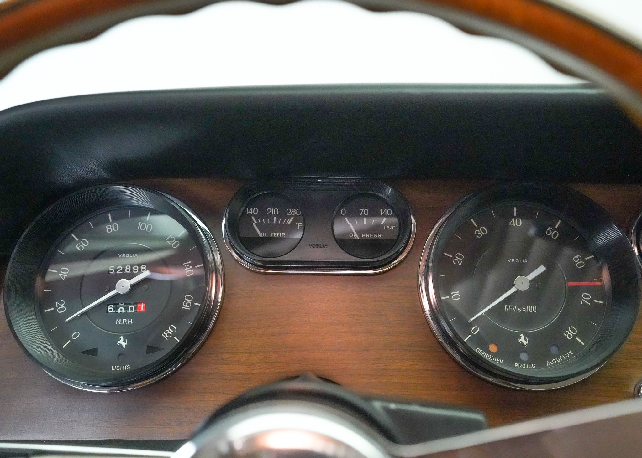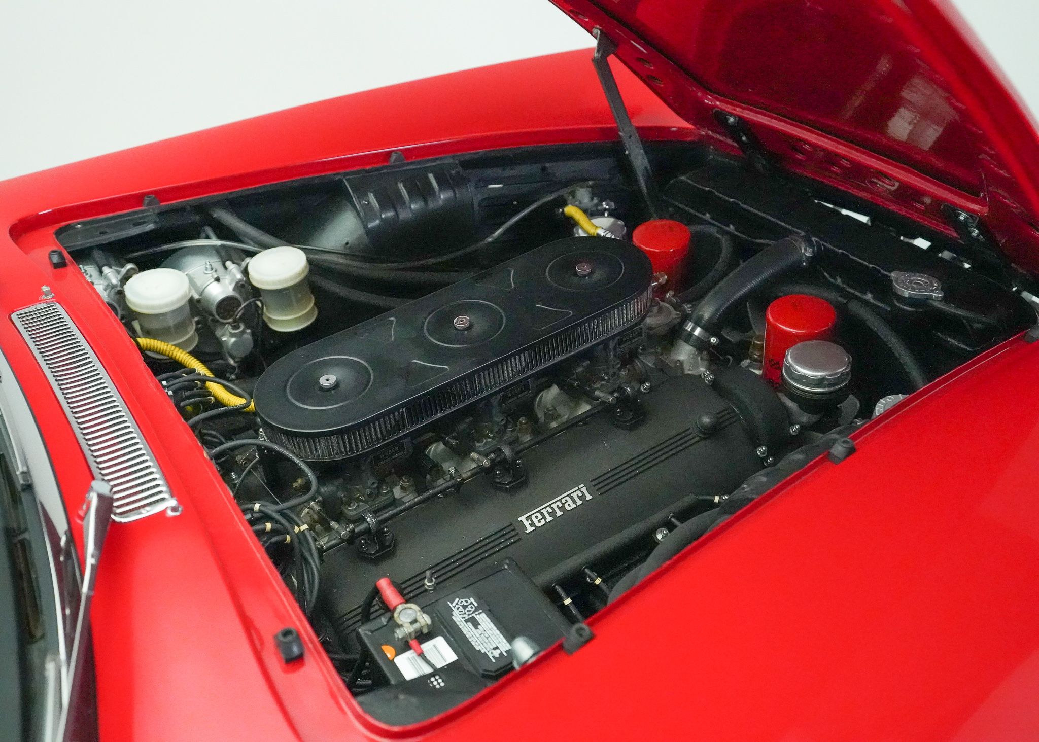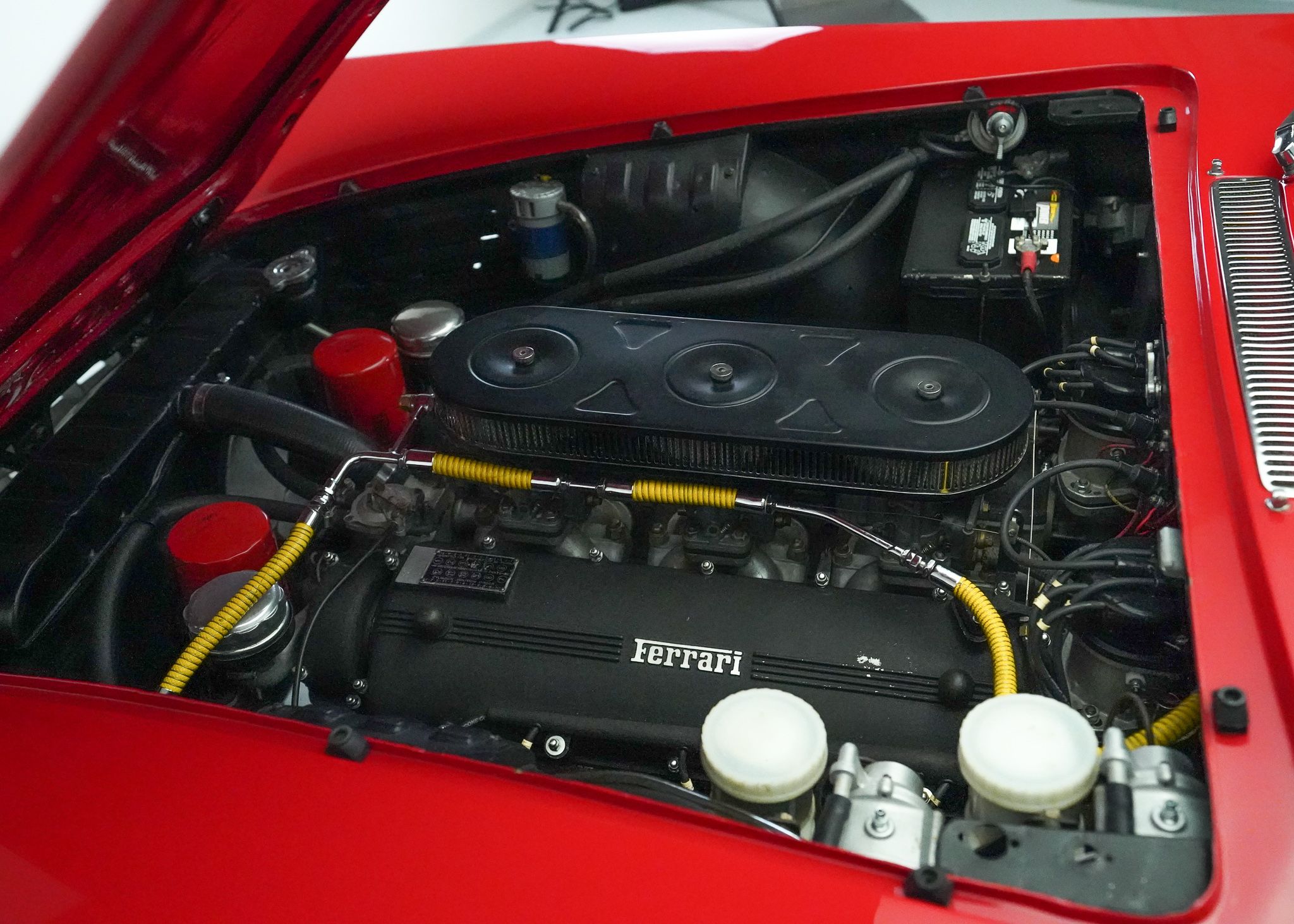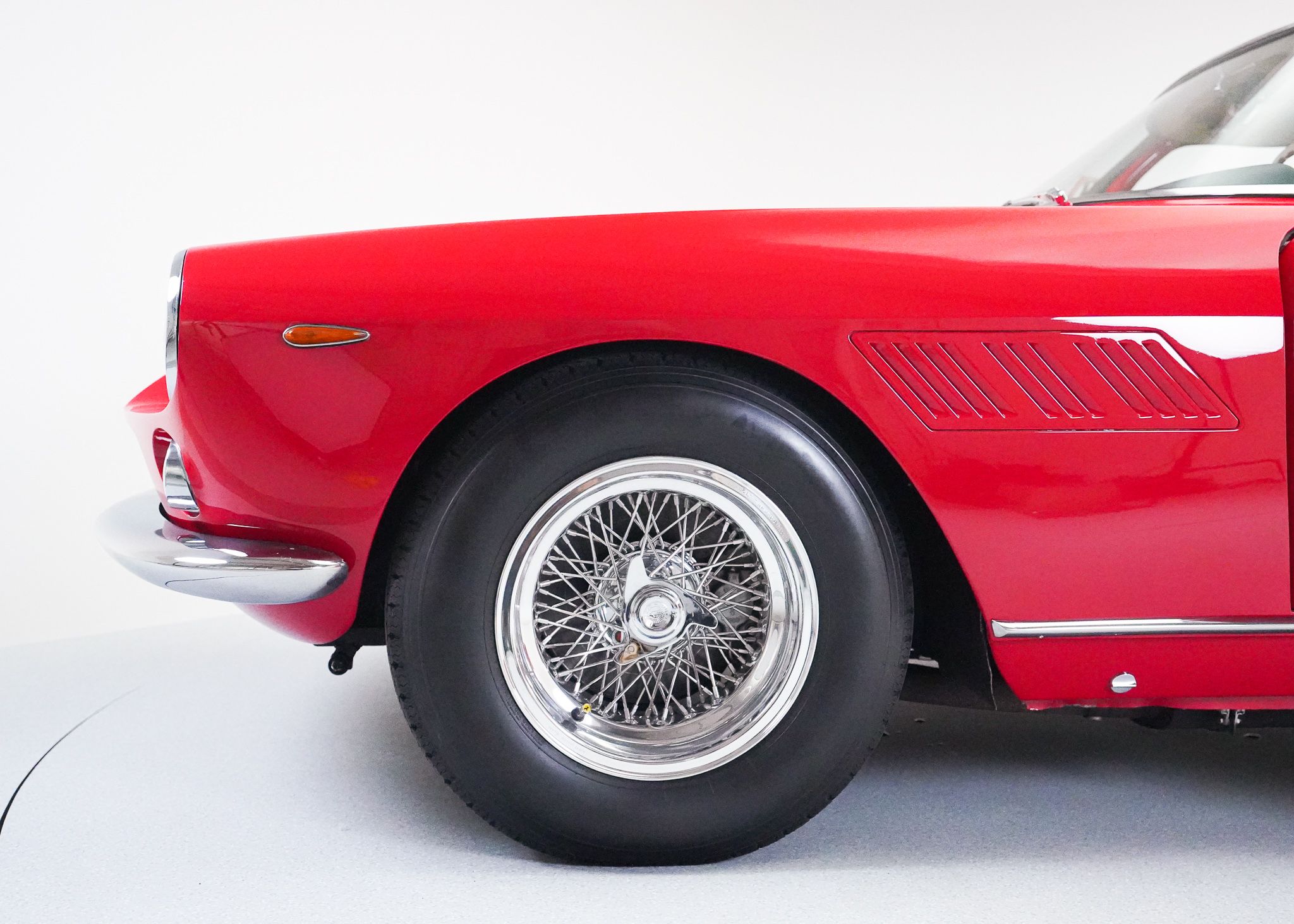 Replacing the 250 GT/E in Ferrari’s lineup of models, the 330 continued to fill the same place of Ferrari’s best selling 250 variant, providing a very comfortable 2+2 layout in a long wheelbase GT car, intended for practical everyday use. The most significant upgrade in the drivetrain between the 250 and 330 was an increase in displacement from 3 to 4 liters in the Colombo V12, still utilizing three downdraft two barrel Weber carburetors mounted in the vee of the engine to provide fuel. This drivetrain was fitted to an updated chassis design, with a little longer wheelbase and slightly wider than that of the 250 allowing for more interior space. Still fitted with a live axle in the back, it had 4 wheel disc brakes, and Koni telescopic suspension from new, along with a half inch wider Borrani wire wheel than that fitted to the 250 GT/E. Built in two series, the first series cars all had 4 headlights, at Enzo Ferrari’s insistance, but the second series reverted to a more traditional two headlight arrangement. Over the course of production the 4 speed gearbox with electric overdrive was eventually replaced by a true 5 speed model and all second series cars received this updated transmission along with some changes to the brake booster setup, the adoption of a hydraulic clutch, and changes to the pedal mountings. I purchased this Ferrari, originally thinking it would serve as a stop-gap in my collection until the Ferrari 250 GTE that I bought after it came on to the market, though when the 250 became available much sooner than I expected, I decided to keep both cars as they fill somewhat different roles in the collection. This car is a driver-level example, with some light wear from use and a few incorrect but not obvious details changed on it, mostly to improve the car’s driveability. When I purchased it, it was a running car, wearing an older restoration, but had not been driven extensively in the recent past and wasn’t necessarily fully sorted out, needing the distributors serviced as well as ignition timing and carburettor adjustments made to get it to run as it should. Once that was done, however, it proved to be a very nice car to drive, with the wonderful power and sound of the Colombo V12 coupled with a very comfortable interior. Steering is unassisted and somewhat heavy but otherwise the car is very capable and easy to drive. In contrast to my Ferrari 250, the driver level condition and lower value of this car makes it an ideal candidate for long distance or multi-day tours, as well as driving in less than perfect conditions. Though not really a show car, this car is an ideal example of a Ferrari that is still very practical and could be easily be used on a regular basis, with plenty of space inside, a large trunk, and excellent power and handling.