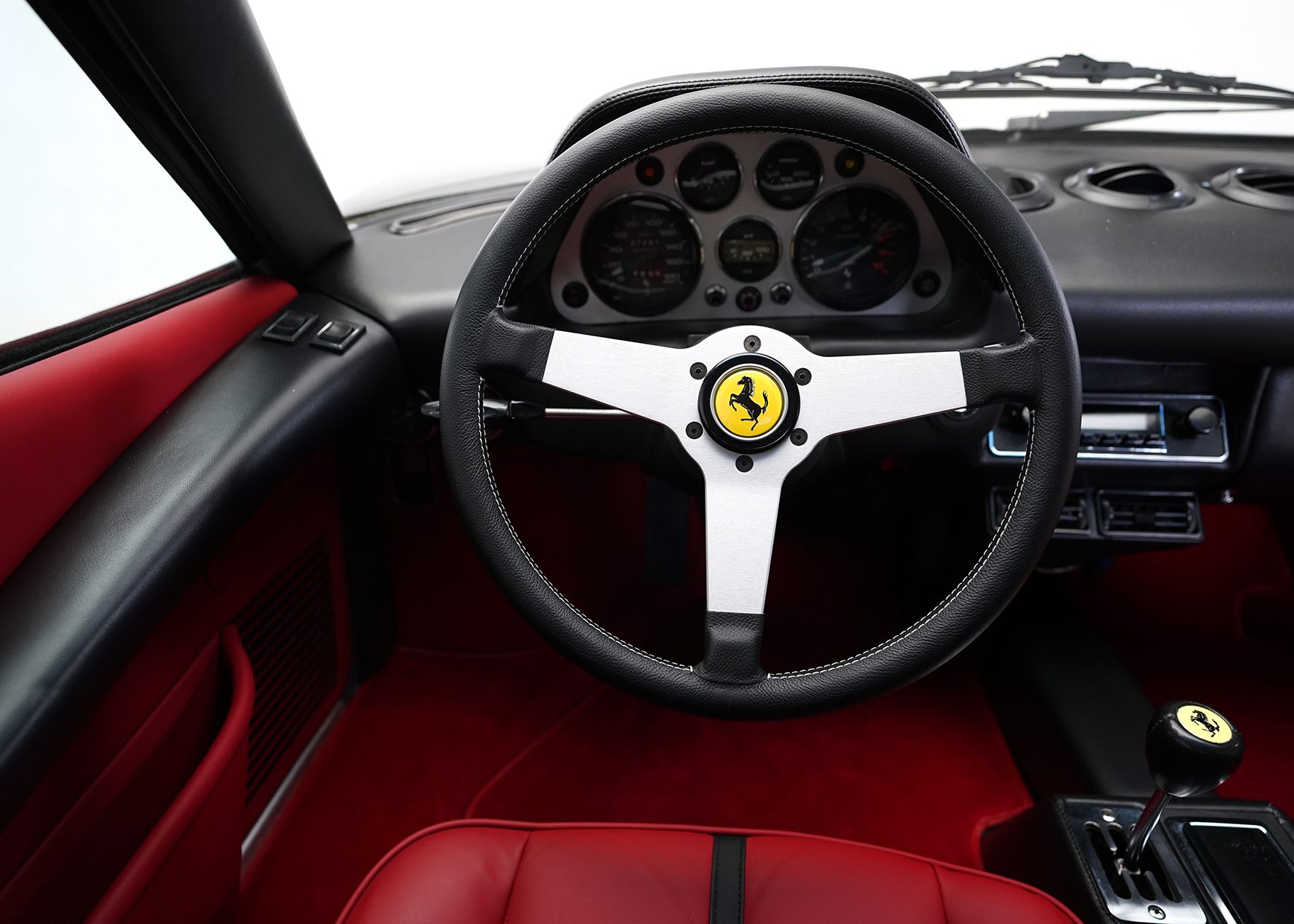 The Ferrari 308 GTB was introduced in 1975, based on a tubular chassis, fitted with a separate body, originally in fiberglass (vetroresina), but later changed to steel, though there is still a fair amount of fiberglass in the steel bodied cars. The change increased the weight of the car by about 150 kg (331 lbs). Based on the transverse V8 drivetrain and fully independent suspension of the Ferrari Dino 308 GT/4, but reduced to 2 seats rather than the GT/4’s 2+2 configuration, the 308 GTB became Ferrari’s second mid-engined V8 car, continuing the line of non-V12 Ferraris targeted at a more entry-level market, first started and marketed under the Dino name with the Dino 206 GT. The “B” in GTB designated the car as a “berlina” identifying it as having a fixed roof. In 1977, however, a targa topped “Spider” version was introduced as the 308 GTS. There were numerous changes made to the engine of the 308, many in the North American spec to allow for emissions, which for the most part also hurt the power output. Fuel Injection was added in 1980, but it wasn’t until 1982 with the introduction of the 4 valve-per-cylinder quattrovalvole version that horsepower came up to equal that of the early carburetted cars. Variants of the 308 design with a variety of small changes remained in production until 1989, with the most significant change being in 1985 with the introduction of the 328 GTB and GTS, with a larger displacement of 3.2 liters and numerous small changes to the body. My Ferrari 308 GTB was purchased locally and had been in the area for quite some time. At the time I bought it, it was a mechanically excellent car, but had been modified extensively with the front bumper completely removed, fog lights and the turn signals fitted behind a modified front grille, all badges but the front Ferrari emblem removed and some non-standard, poorly angled bullet-style mirrors fitted to both doors. The car had already been repainted, though there were visible flaws in the paintwork. The interior was original and black, but worn with some splitting happening at the seams in the seats. After purchasing the car, I have since had it repainted in its original Grigio Ferro (Steel Grey) colour and completely reupholstered the interior in red rather than the original black, which I think personally suits the car better. In the process I returned the car to a more original appearance, fitting a European spec front bumper and reinstalled the badges and more proper and useable mirrors than what were fitted to the car when I bought it. Other more subtle details to the work carried out was the recovering and reinstallation of the zip-up spare tire cover in the front. This car, when I purchased it, was fitted with a Blaupunkt Berlin radio, with a the controls mounted on a separate stalk a cassette tape deck in 1976, and microphone if you wished to record dictation while in the car. This radio was an incredibly expensive option at the time with prices around $1300 in 1976 for just the radio. Unfortunately it didn’t function correctly and would be difficult to have repaired, so in the retrofit, I replaced it.