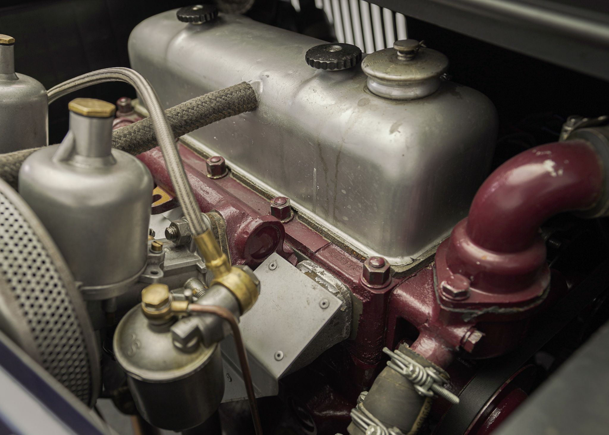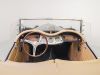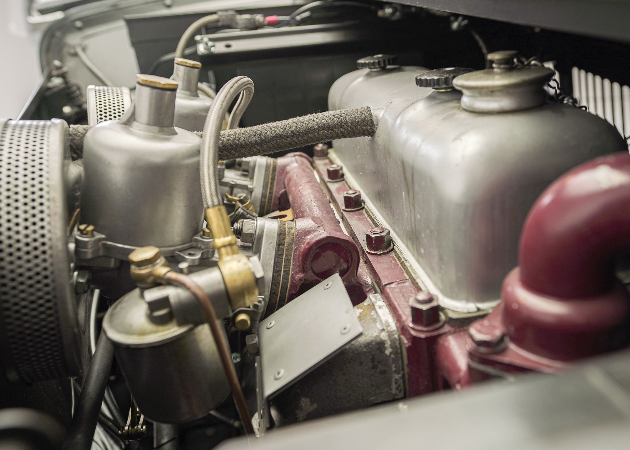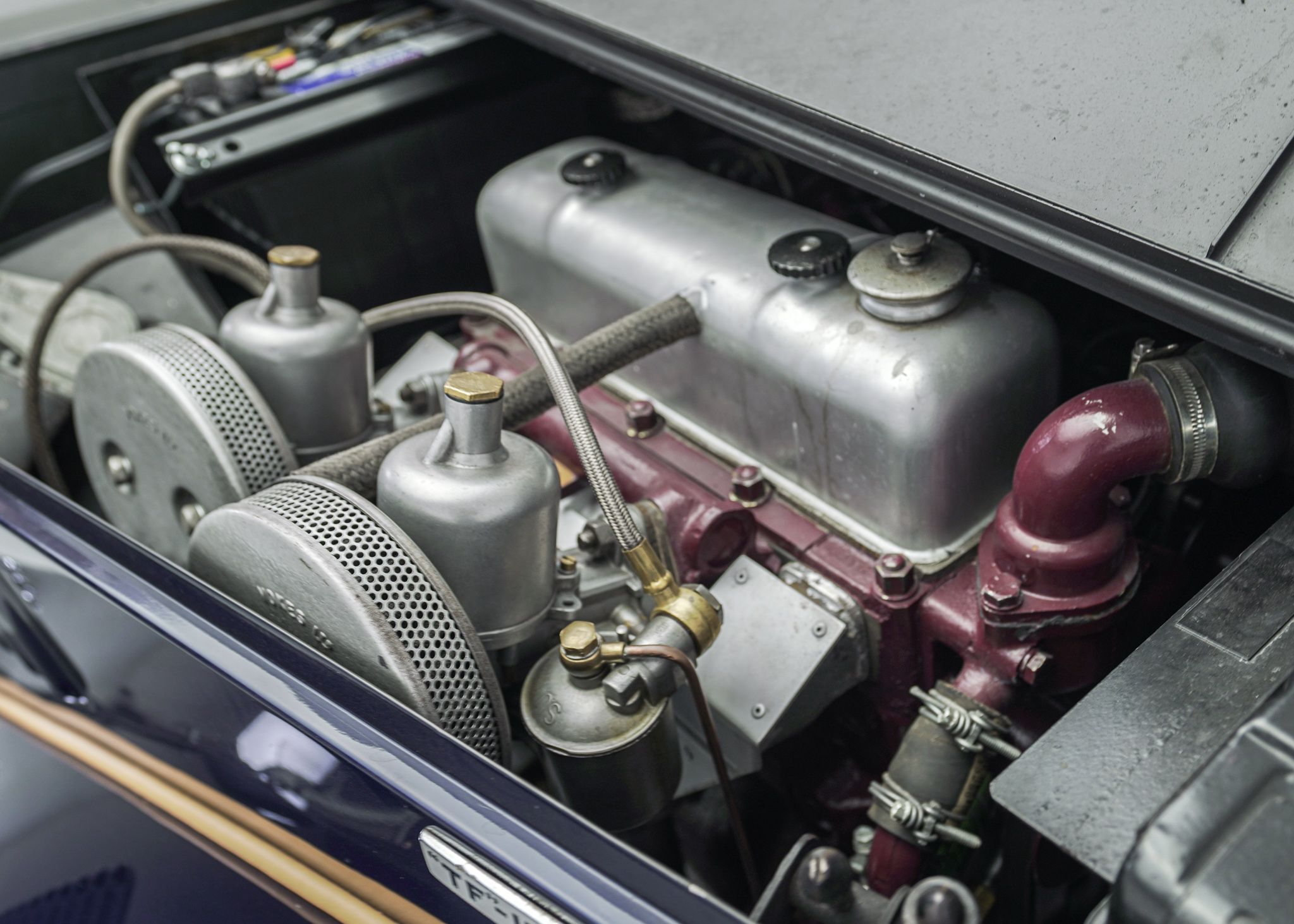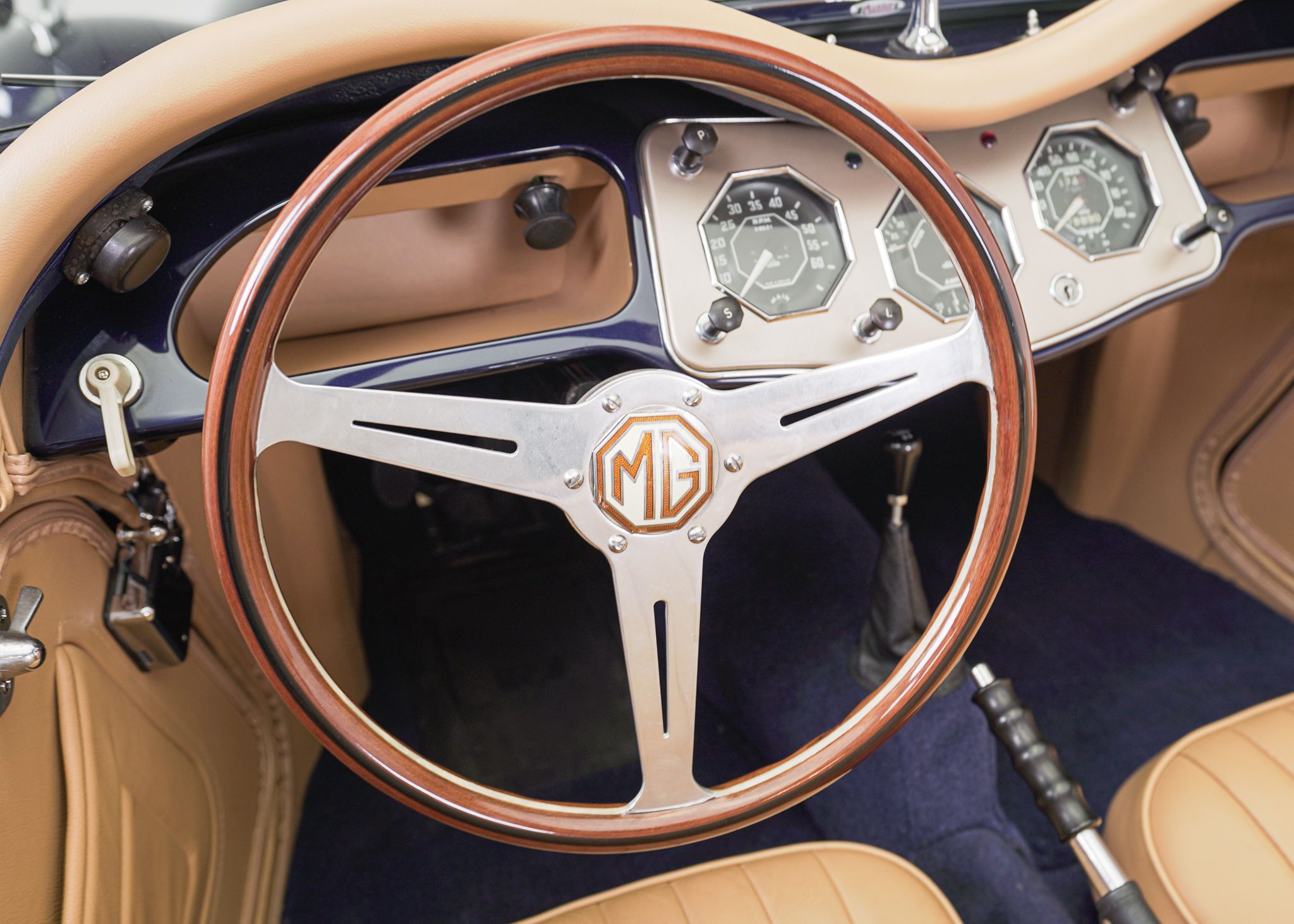 Although the MG TC is often considered to be the car that introduced Americans to European sports cars, by the time the MG TF came out in 1953, it was the second facelift of the MG TC’s prewar design and was looking very dated. The TF did make some cosmetic changes, introducing a more slanted radiator grille, integrating the headlamps into the wings, and reshaping the back end to make it a bit sleeker looking. Although the TD, which preceded the TF introduced front independent suspension to the design and various other upgrades over the TC, it left the drivetrain more or less the same, aside from changes to the rear axle design. It wasn’t until 1955 at the end of the TF production that the pre-war XPAG 1250cc engine used from the TA of 1937 into the MG TF, was upgraded to the new XPEG 1466 engine which slightly raised horsepower, but more significantly, a 17 percent increase in torque. This example was restored locally to a high standard with just about everything rebuilt and we saw it for the first time when the shop that rebuilt the drivetrain was doing the final tuning on the freshly completed car. The owner at the time was a woman who had owned the car for years and had commissioned the restoration. Unfortunately, shortly after, she fell ill and several years later she had passed away and the car came up for sale, having hardly been driven since we had seen it last. Both of us had fallen in love with the beautiful colour combination and execution of the restoration on this car, so we opted to buy it to replace a driver level MG TF 1500 we already had in the collection. With its light weight and the extra power of the later engine, this MG TF 1500 is a surprisingly sprightly vehicle to drive. After buying it we opted to retrofit a 5 speed gearbox to the car, which allows the car to make the most use of its extra torque and makes it very comfortable to drive over longer distances at higher speeds.
